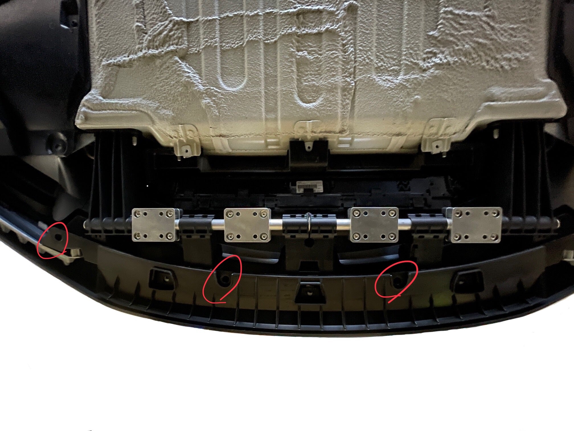 With the under tray removed, it is time to install the (6) M6 clip nuts. In the image to the left, you can see the center 2 positions that need the clip nut.
