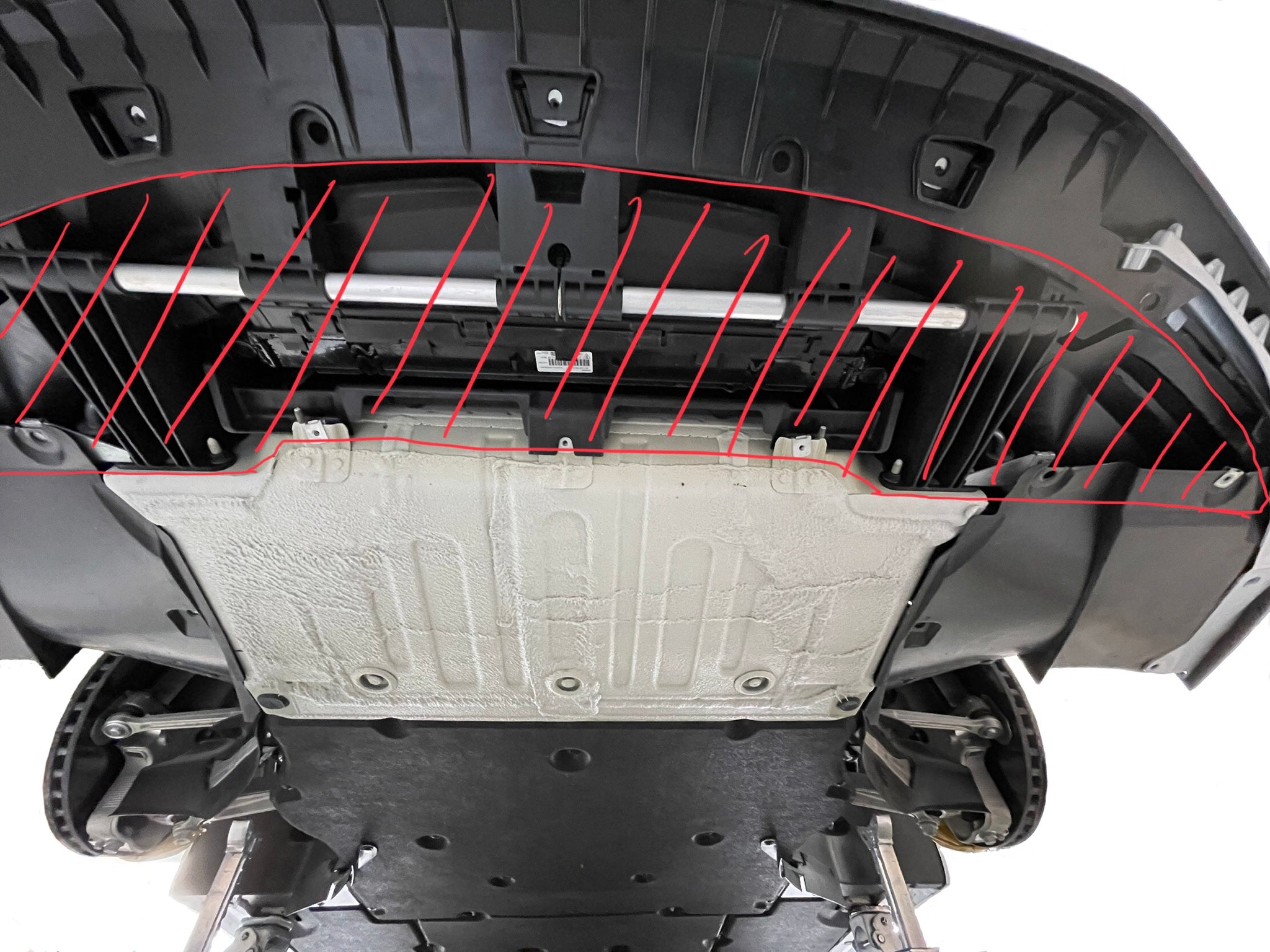 The front undertray must be removed first for the installation. Using a Torx T25 socket, remove the necessary screws around the tray. Once removed the underbody section should look like the right. The fender lining in each wheel does not need to be trimmed as the diffuser will fit right underneath.