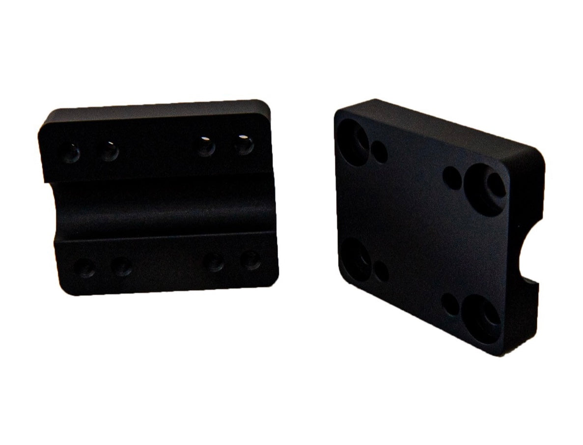 Carrying most of the splitter load will be (4) sets main brackets. The top parts of the bracket has 8 tapped threads and the bottoms just have through holes. These brackets are designed to clamp onto the aluminum bar as seen in the picture below.