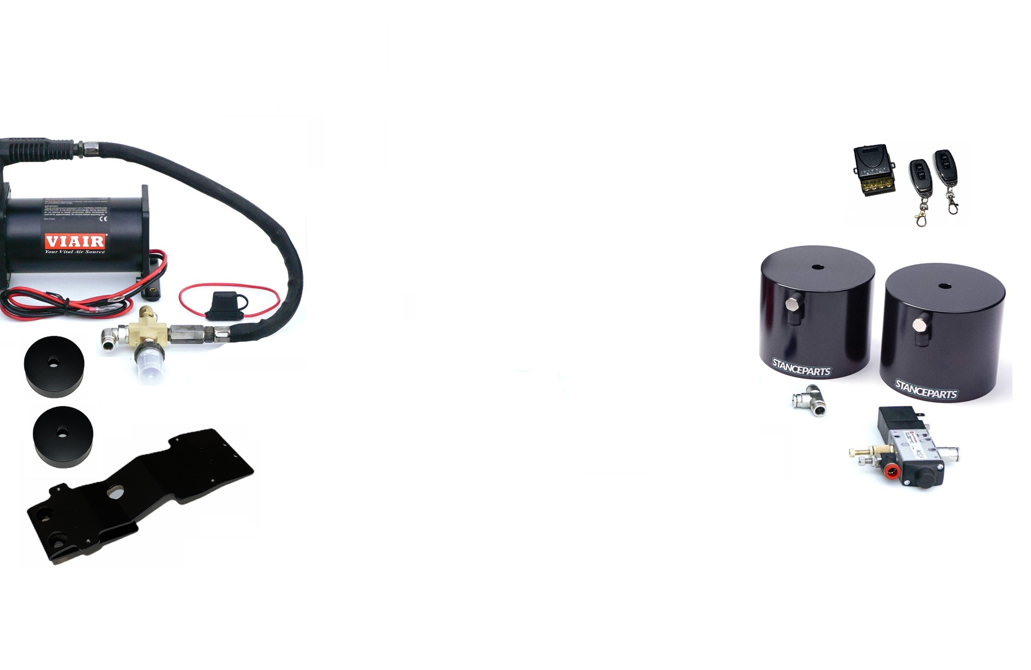 Due to the macpherson suspension design, the air cups will turn when the steering wheel is turned. When attaching the air hoses to the air cups, turn the steering wheel full lock one direction. Check to make sure the lines are not crimped and turn full lock the opposite direction. Make sure the air hoses are installed in such a way that no crimping or tight turns are made when the car transitions from full lock to full lock.
