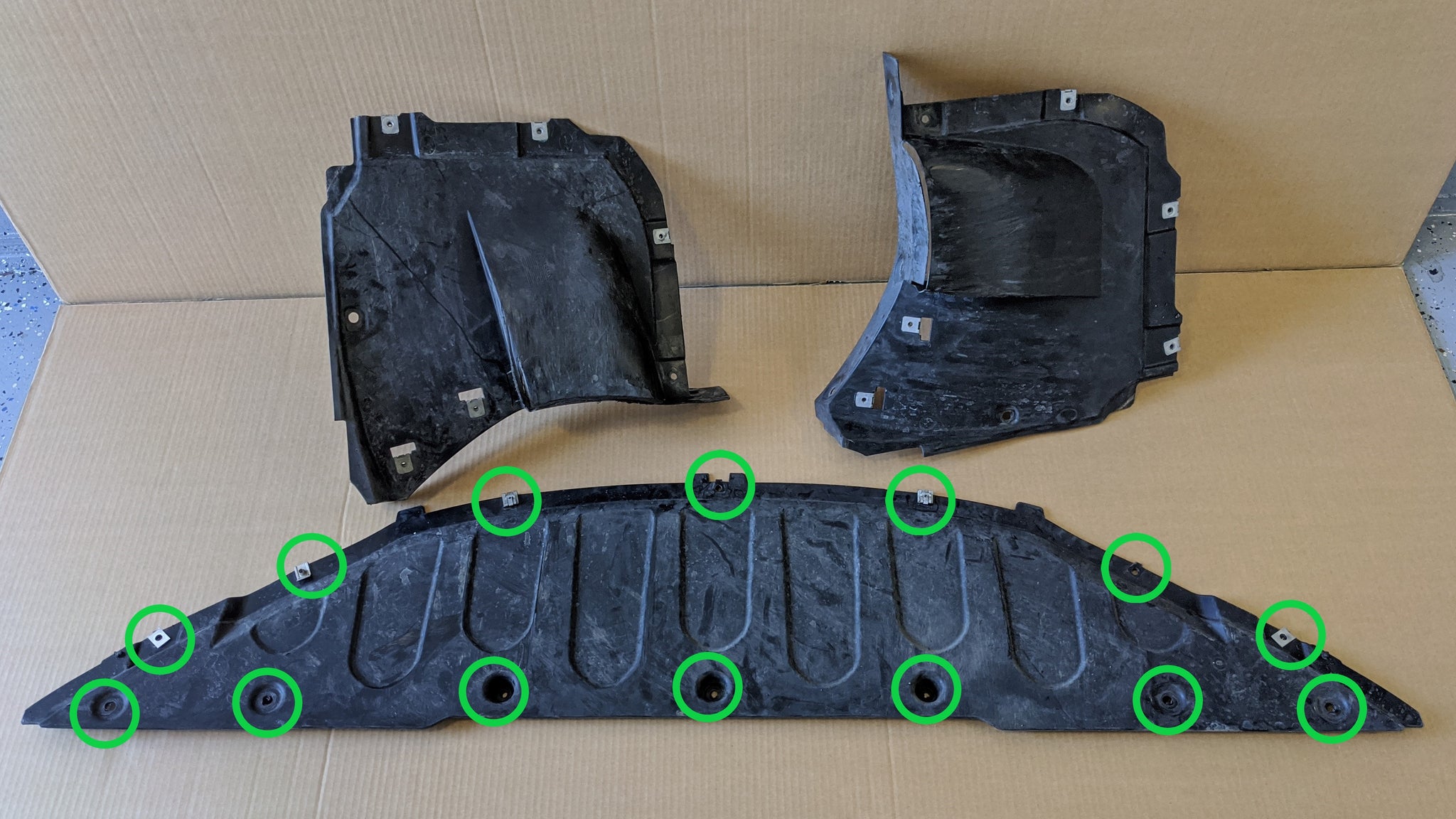 As shown in the photo above, at each of the circled locations we will need to install the (7) M6 clip nuts. For the locations circled in red, we will need to remove the OEM clip nut first. Use a set of pliers and even a flathead screwdriver for this part. When installing the clip nuts, make sure that the threads line up with the hole.