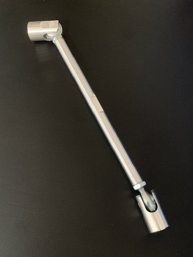 Once the studs are installed on both sides of the chassis, attach one side of the splitter rod to the newly installed rivet studs. Tighten the splitter rod and jam nut but make sure that the rod can reach the proper location when the splitter main mounts are attached. This will take some back and forth adjustment. Once the right angle and length is achieved, it is a good time to reinstall the horns. Next, install both of the main mounts as described in the previous steps and install the rod to the countersunk hole as seen in the bottom middle picture. You will use the supplied flathead 5/16" screws and 3/16" allen key.