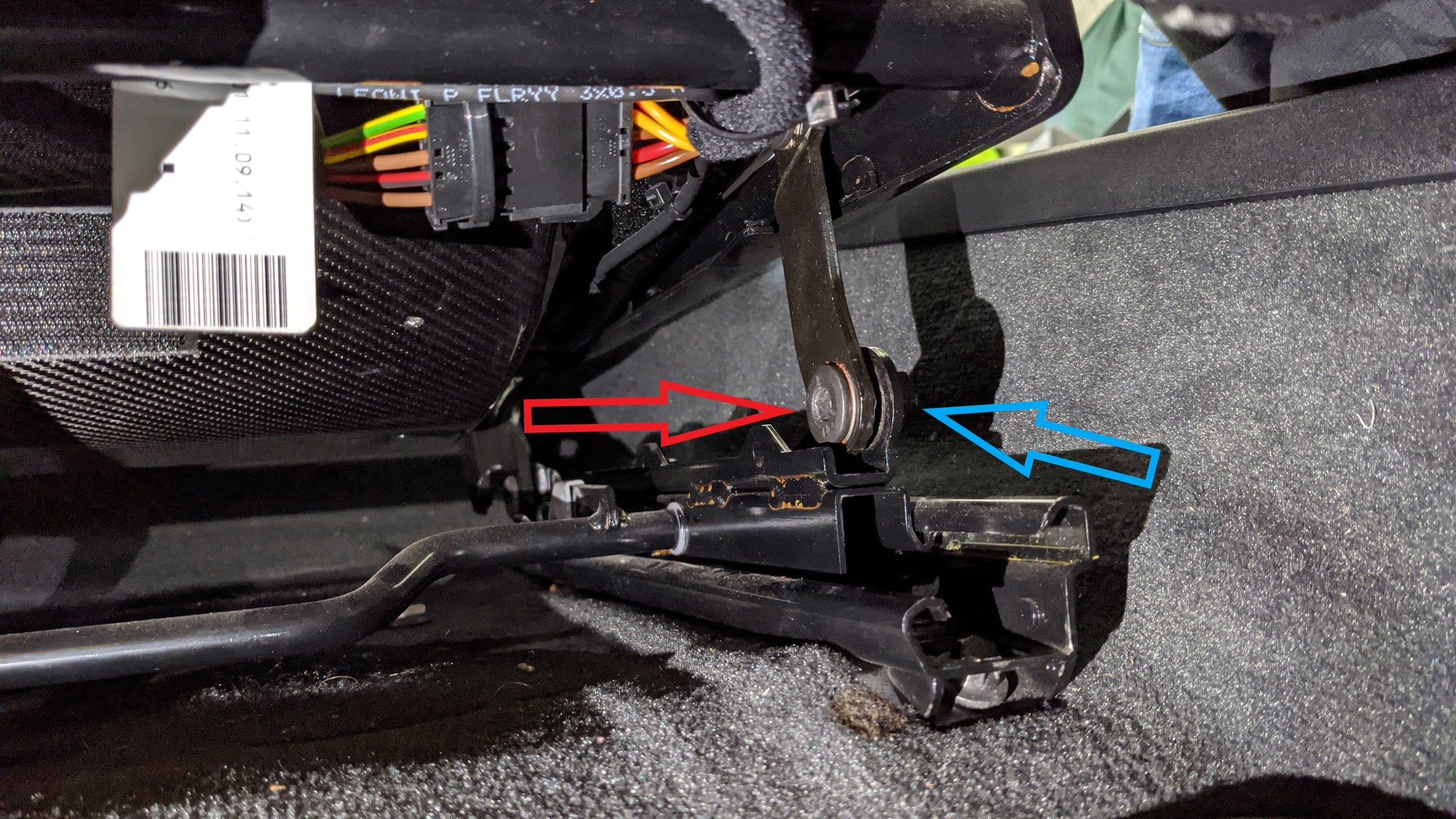 For the 2-way seats, use the OEM nut and screw on the bottom of the recliner bracket and the supplied
